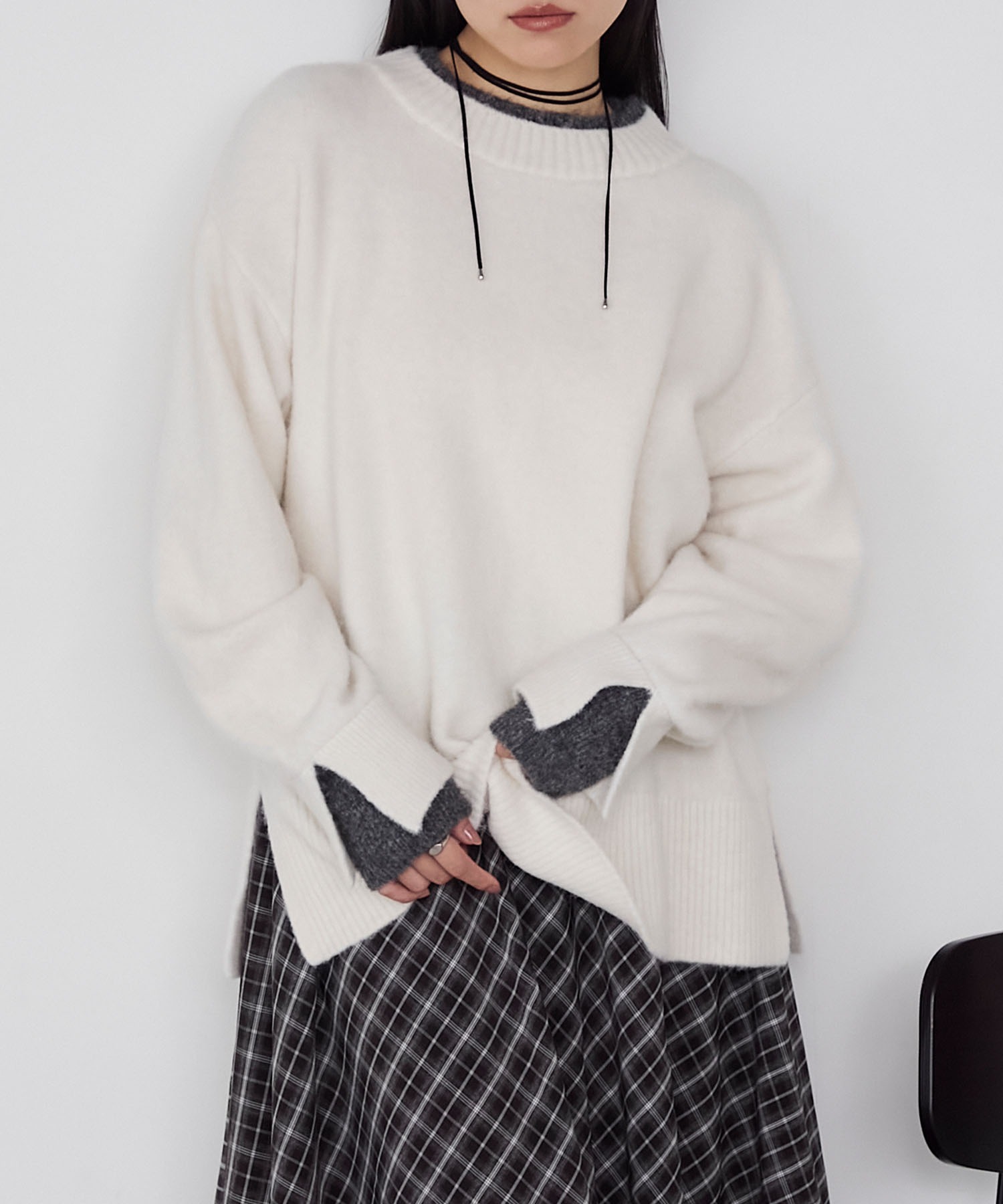 袖口與領口採用雙層設計,營造出自然的假兩件層次效果。