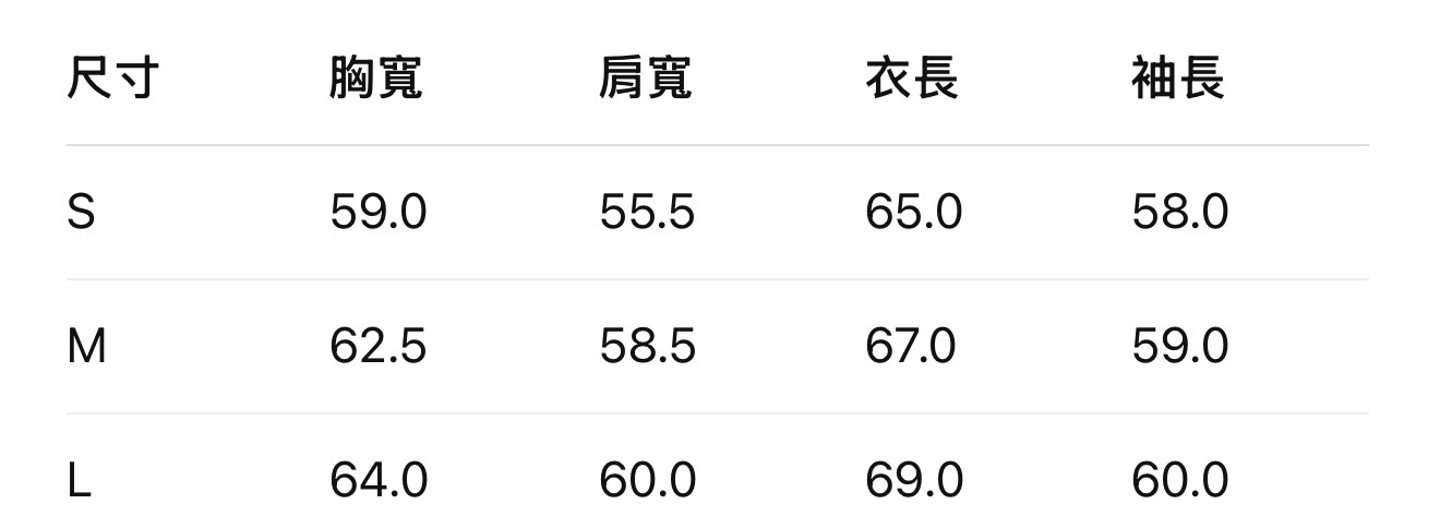 尺寸 S M L