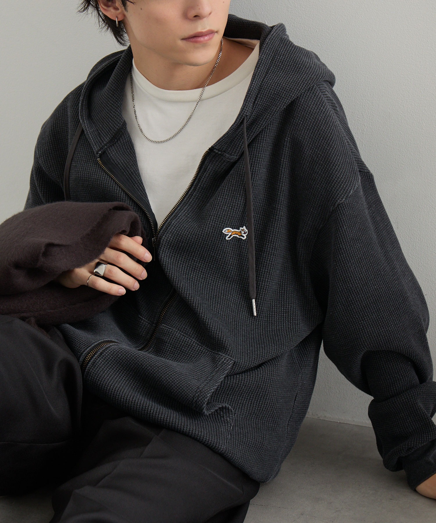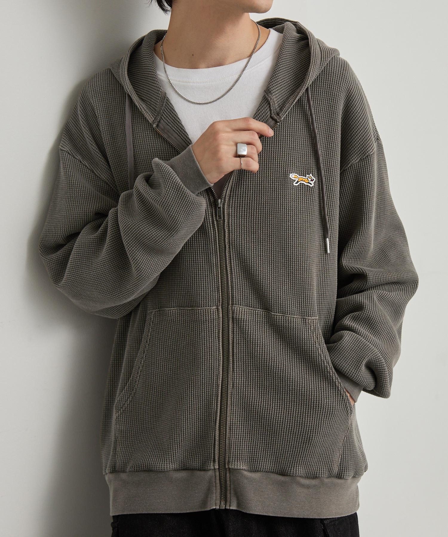 日本 PENNEYS 小狐狸復古刷舊華夫格連帽外套 4色